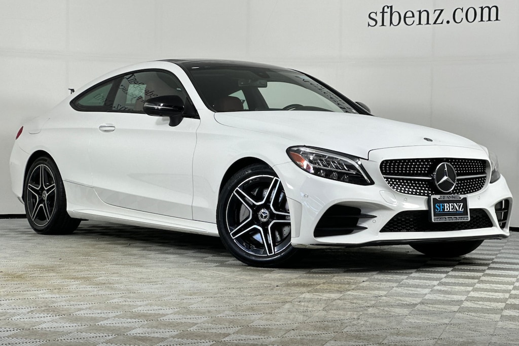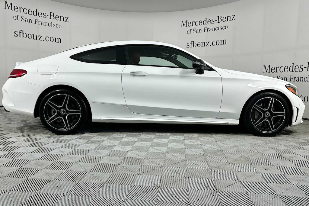 Aluminum Pedals, AMG® Line, AMG® Line Exterior, AMG® Line Interior, AMG® Sportline, Black Fabric Headliner, Diamond Grille in Chrome, Flat-Bottom Steering Wheel, Front Brakes w/Perforated Discs, Heated Front Seats, Night Package, Night Package (P55), Parking Assist Package, Parking Damage Detection, Parking Package, PARKTRONIC w/Active Parking Assist, Rear Cross-Traffic Alert, Sport Suspension, Surround View Camera, Wheels: 18 AMG® 5-Spoke w/Black Accents.. . Clean CARFAX. Polar White C 300 RWD 9-Speed Automatic 2.0L I4 Turbocharged. . 22/31 City/Highway MPG. . . Your Proud Bay Area Mercedes-Benz Dealer Located in San Francisco.