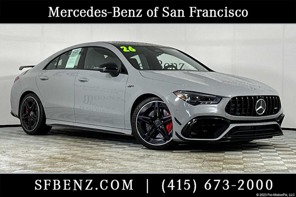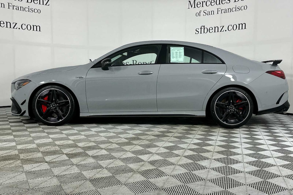 Active Distance Assist DISTRONIC®, Active Lane Keeping Assist, Active Speed Limit Assist, Active Steering Assist, AMG® Aerodynamic Package, AMG® Design Package Plus, AMG® Head Up Display, AMG® Illuminated Door Sills, AMG® Night Package Plus, AMG® Performance Seat Package, AMG® Performance Seats, AMG® Specific Radiator Grille in Black, Augmented Video for Navigation, Driver Assistance Package, Front Splitter & Trim in High-Gloss Black, LED Intelligent Light System, MBUX Interior Assistant, Model and Brand Logo on Trunk in Black Chrome, Multi-Contour Front Seats, Parking Package w/360 Degree Camera, Pinnacle Trim, PRE-SAFE® System, Surround Lighting w/Projection of Brand Logo, Traffic Sign Assist, Wheels: 19 AMG® Twin 5-Spoke in Matte Black.. . CARFAX One-Owner. Clean CARFAX. MANUFAKTUR Alpine Gray CLA 45 AMG® 4MATIC® 4MATIC® 8-Speed Automatic 2.0L I4 Turbocharged. . 20/28 City/Highway MPG. . . Your Proud Bay Area Mercedes-Benz Dealer Located in San Francisco.